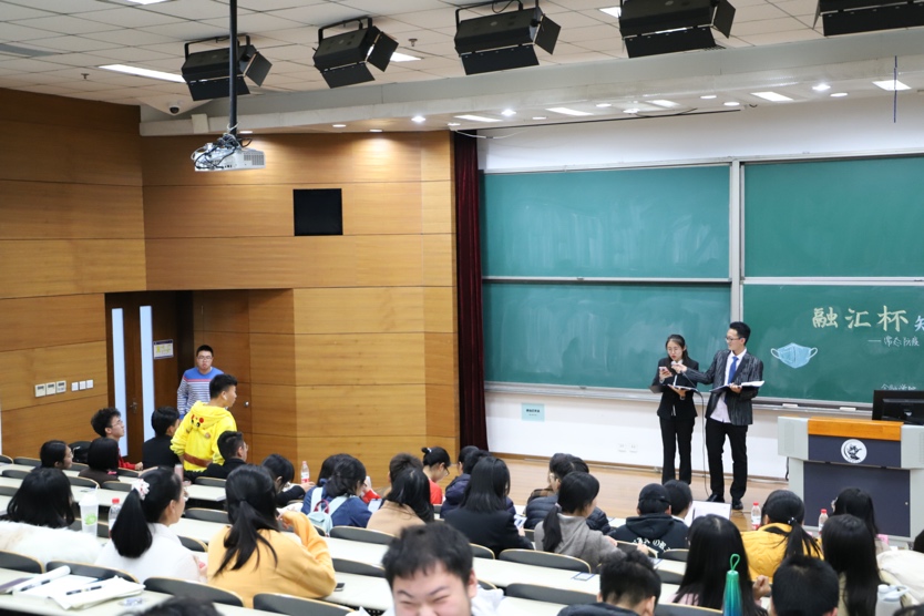 “有问必答”作为第一环节拉开了竞赛的帷幕。在该环节中,主持人按照各小组编号顺序依次提问,选手现场限时答题,答案即刻揭晓。现场气氛高涨,参赛选手在其中学习到了实用、专业的防疫知识。面对涉及国家防疫政策、国际抗疫情况、抗疫杰出贡献同志、与疫情相关的生物知识等各个方面的问题,各位同学各尽所能,出色的表现展现了金院学子忧国忧民、心存天下的广阔胸怀。