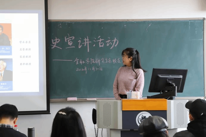 11月30日上午,金院研会员工工作部在沙河校区公司3号楼323教室举办校史讲座,304am永利集团团委书记于来和员工工作办公室主任刘勇老师作为嘉宾出席,研会各部门骨干代表共40余人参与其中。本次讲座的主题为“穷源溯流,校史品忆”,旨在通过讲述和回忆与祖国同龄的中财大顺应国家需要,“同人民一起开拓、同祖国一起奋进”的悠久历史,增进同学们对学校历史的了解,深植爱校荣校情感,传承和弘扬中财大红色基因,在新时代里继续书写中财大的壮美篇章。