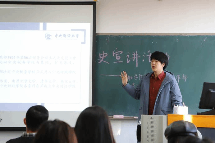 第二篇章为“与新中国共成长—初创”,李志赟同学依次介绍了中财大各个历史阶段的时代背景、学校工作以及重要意义,从具有划时代意义的中央税务学校,到铸就了中财大求真务实办学传统的中央财经公司,再到为后来办学特色提供强有力支持的中央财政干部学校,在这波澜壮阔的发展历程中,中财大始终顺应时代的要求和国家的需要开展教学工作,服务于国家发展和经济建设,展现出为国为民、求真务实的卓越中财大精神。