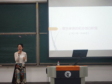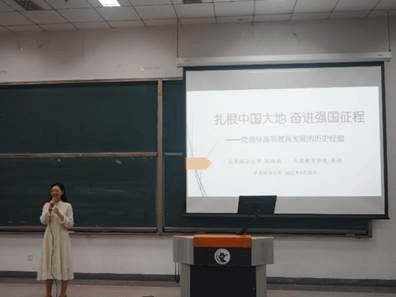 (阮琳燕为同学们讲述中国高等教育的背景)