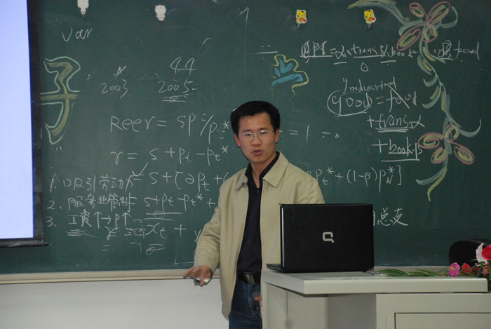 在主讲人主讲结束后,谭小芬老师对主讲人论述的内容进行了点评。他首先表扬了两位同学所写的论文,但也提出了主讲人讲解时条理不够清晰等不足之处。随后谭小芬老师亲自演算公式,对论文内容进行简明易懂的讲解,使同学们受益匪浅。