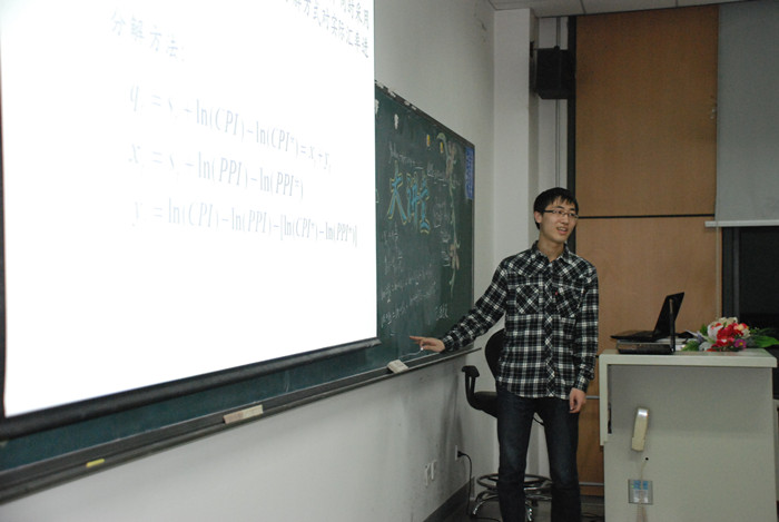 首先开讲的是龚力丹同学。龚力丹首先对文献综述的内容及方法进行了介绍,其次她对模型的构建,基本分解式进行了讲解。随后进行了实证结果的分析。在主讲的最后龚力丹列出了影响B-S效应的其他因数,得出了非贸易品的价格对中国实际汇率的影响程度较小的结论。