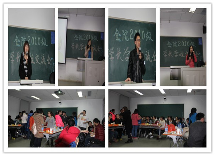 在学长学姐答疑环节,同学们积极踊跃地就学习方法、社会实践及班级工作等问题提出疑问。2010级四位同学非常热心、详细地解答。接下来的自由交流互动环节,学长学姐走下讲台,深入到同学们中间开展近距离交谈。同学们以高涨的热情,将学长学姐团团围住,踊跃询问有关学习和生活上的问题。最后,在合影留念中结束了此次交流会。