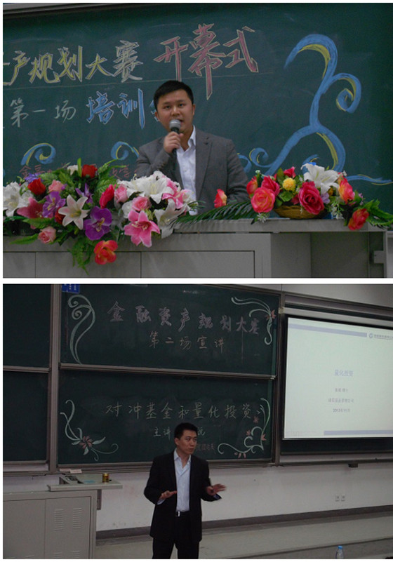 11月6日晚7点,第二场培训在主教217举办。本次培训会主讲人是建信基金管理公司的张锐博士。他用生动幽默的语言,深入浅出地为同学们介绍了量化投资背景和量化方法在当今世界发挥的巨大作用,并且用自己的专业知识和亲身经历在现场为同学解答疑惑,使大家再次感受到量化方法巨大用途,同时也对自己的人生规划有了更深的思考。