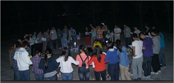 刚刚6:30,班委就已经开始将吃喝用品、灯光设备拿到了晚会的现场。铺桌布、摆桌子、发月饼、放音响,夜幕映衬着忙碌的身影。月光穿过云层,隐隐的照在周围的草地上,仿佛升腾起凉凉的雾气。大家陆陆续续地就坐完毕,中秋晚会就在灯光中拉开了帷幕。“扭扭乐”是晚会的热身大戏,参赛同学要按主持人指示将四肢放在规定颜色的地方,通过侵略对方的地盘把对手逼出地图。比赛开始,不同的风格给观众带来了不一样的笑声,有的同学稳扎稳打,步步为营,有的同学下手迅速,一招制胜。整个比赛过程谈不上惊险,却足能称得上刺激。接下来又有猜数字大冒险、比赛斗地主等活动,精彩纷呈。最后,大家集体起立,手挽手一起环成一个圆圈。《朋友》、《相亲相爱一家人》的歌声回荡在静静的校园里,朦胧的月光下我们能清楚的感受到,这是活力,是友谊,是青春。结束的焰火照亮了脸上的笑容,定格了今晚的记忆。