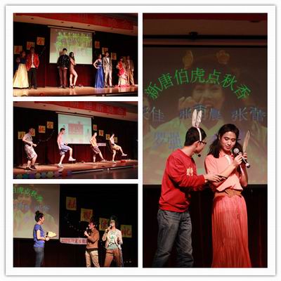 随着现场起伏闪烁的灯光,几位同学为我们献上了精彩的印度瑜伽舞,在柔和的音乐中曼妙的舞姿显得更加美不胜收,赢得了观众们阵阵掌声。由五名同学带来的话剧表演《新唐伯虎点秋香》用新颖独特的反串形式将经典改编并重新演绎,体现了同学们丰富的想象力和创造力,引得现场观众笑声不断。