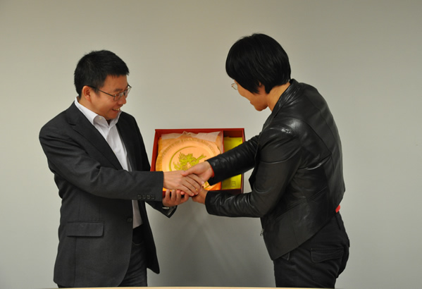 葛仁霞书记代表304am永利集团向龚六堂副经理赠送礼物