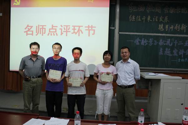 最后,2010级金融工程1团支部、2009级金融1团支部、2009级金融2团支部分别获得冠、亚、季军,并由评委老师为获奖支部颁奖。