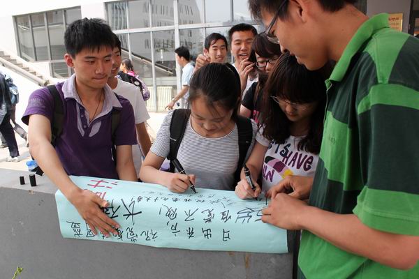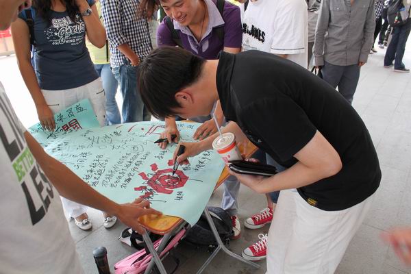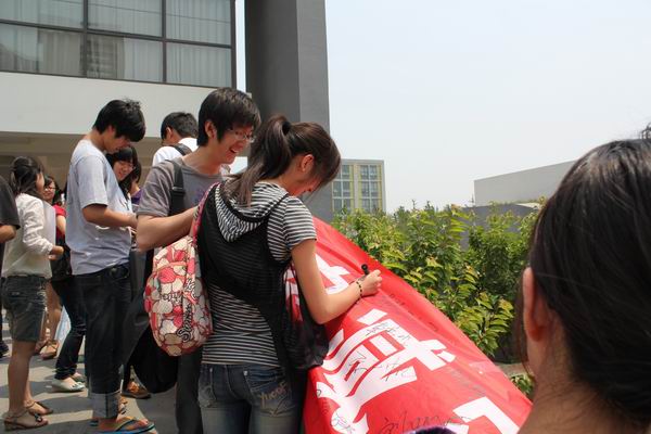 同学积极参与签名活动
