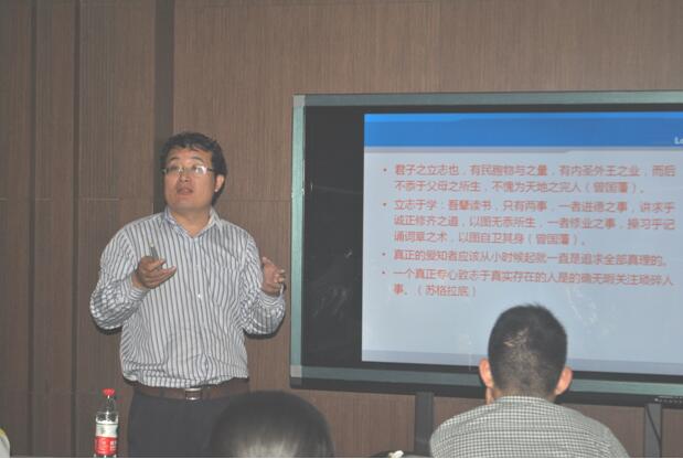 白云真副教授强调了老员工在学习之余注重“习”之修养的重要性,他借助大量中国古典文学中的经典语句来定义优秀的员工应该具备的品质:好学,知足,自省等,指出治学之道需终身学习,以史为鉴,为未来可能发生的一切做好充分的准备。谈及未来规划,他把志向与磨砺作为重点,指出老员工立志要高远,应反复琢磨自己的志向,以此达到中年而立之说。谈及老员工的生活社交,他提出广泛结交良师益友是老员工活的重要组成部分,员工不仅要向老师和同学学习,更要向先贤学习,在与书本中的贤者交流时产生思维的碰撞,使自己的思想特立独行。