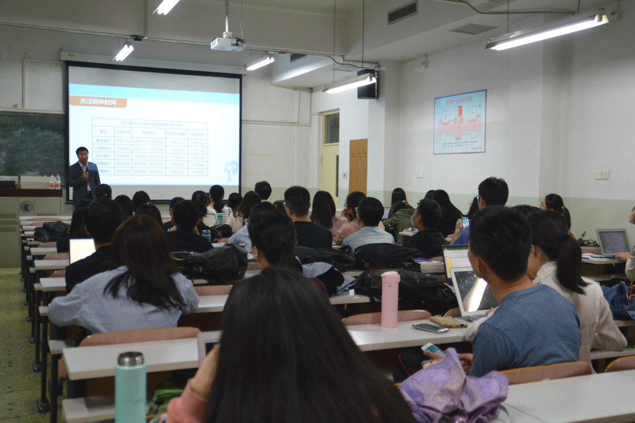 网申是进入银行的敲门砖,为让同学们对此有一个清晰全面的认识,2018年9月28日19时,由公司职业发展中心主办、研究生会职业发展部承办的职业发展系列讲座(十)——金融银行网申指导讲座在公司南路校区主教108教室举办。中公教育集团金融银行研究院面试部负责人张飞老师作为此次讲座的主讲嘉宾,职业发展中心老师位锦与公司本硕博应届毕业生60余人共同参加。