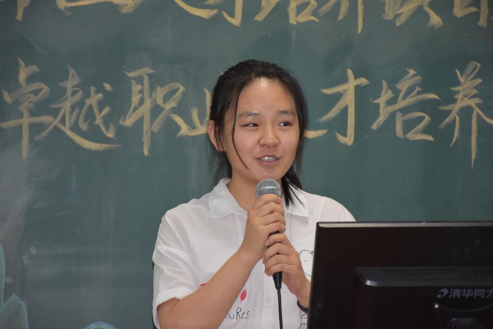 首届卓越职业人才培养项目员工代表、金融学15-2班杨佳蕾同学发言。她表示卓越职业人才培养项目提升了同学们的职业素养和职业能力,增强了职业规划意识,有助于同学们成为具有深厚理论功底、精湛专业技能、良好综合素质、优秀人格品质的一流金融人才。在项目的活动过程中,同学们建立了一个有凝聚力的集体,留下了珍贵的友情和温暖的回忆。在项目的推进过程中,传承二字贯穿其间,同学们在收获了员工导师无私帮助的同时,也感恩导师和老师的付出,希望未来能为卓越职业人才培养项目增砖添瓦。