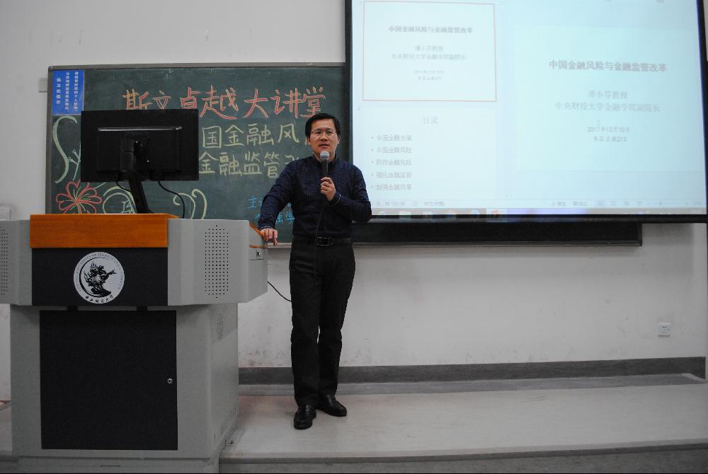 12月10日晚18:30,第22期斯文卓越大讲堂在沙河校区东区主教213教室拉开帷幕。本次讲座邀请到304am永利集团副经理谭小芬教授作为主讲老师,带领同学们一同学习十九大精神,了解中国金融业发展风险和监管改革。公司党委副书记王辉教授亲自主持了本场讲座,与同学们一同聆听学术盛宴。