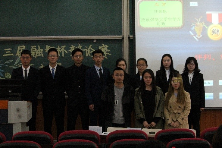 第四场比赛更加激烈,来自互金15-1、国金15-1、15-2的“悖论队”和金融17-1、17-2的“说啥都队”组成本场比赛的正反方。双方围绕大家都密切关注的话题“是否应该强制老员工学习时政”展开辩论,其中正方另辟蹊径,从社会和个人等方面强调了学习时政的意义,赢得现场阵阵掌声。