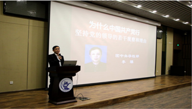 在报告中,李骥副部长指出了坚持中国共产党领导的重要性所在,并从党国特殊历史逻辑、实际执政绩效证明、自然规律生动体现、传统政治智慧传承四个方面阐述坚持中国共产党领导的重要性。联系现实,李副部长引用了《大道之行》中的话,阐述其对政治及制度的辨析。他强调道,正是由于拥有坚持集体领导、党管干部、党政分工而不分开等体制,谨守为人民服务的初心,中国共产党才能在社会中长久地存在,中国也才能在科学的方针路线的指导下获得长足的发展。