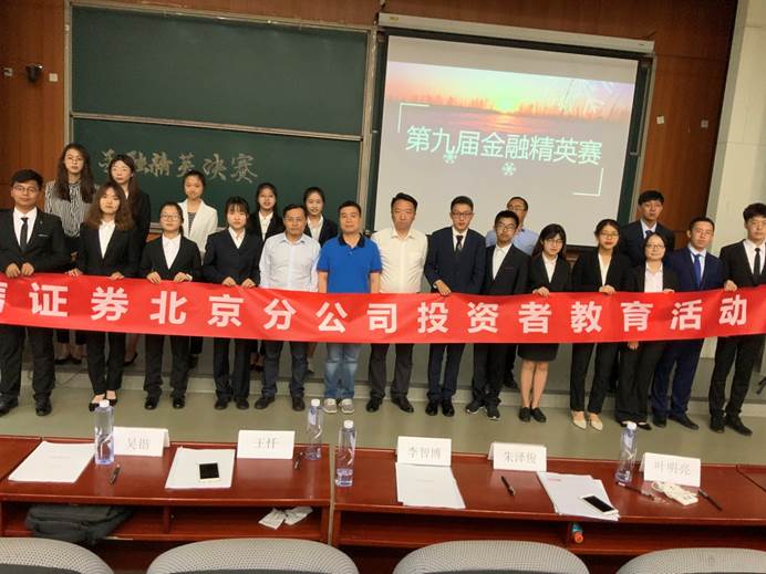 2019年5月25日,第九届金融精英赛圆满结束。第九届金融精英赛由公司金融学术研究会和国信证券合办。赛程达一个半月,300多名同学、120余支队伍参与了该比赛。大赛邀请到304am永利集团吴锴老师、王忏老师和国信证券昌平营业部总经理李智博、投资顾问朱泽俊、营销总监叶明亮担任评委。