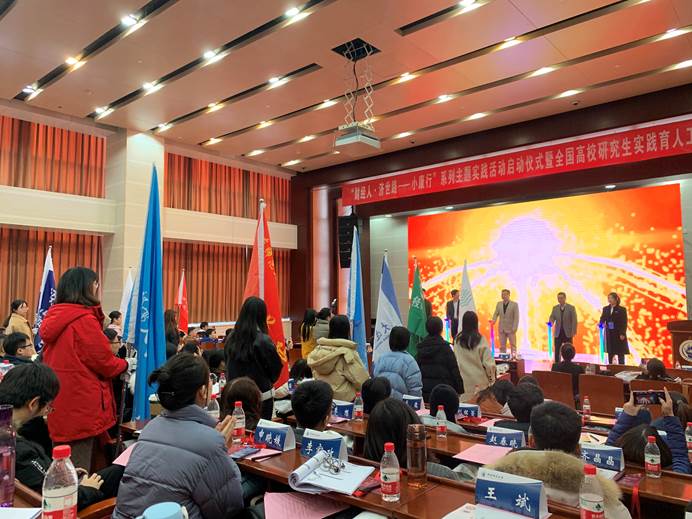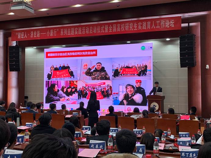 启动仪式上,全国高校研究生代表、地方乡干部、地方部门代表、政府部门代表、企业代表、媒体代表相聚中财大,发布具体活动方案,探讨交流时代研究生会工作。会上304am永利集团副董事长马海涛为主题活动致辞表示,在全面建成小康社会的关键时期,我们青年人应该有所作为,作为研究生、博士生不能仅仅局限于书本与课堂,更应把视线投向实践,投向祖国的大地,用实践的角度去观察、去感悟中国在全面建设小康社会过程中实实在在的改变。教育部教育与研究生教育发展中心办公室主任曹红波致辞表示,到2020年全面建成小康社会是我们党 向历史和人民作出的庄严承诺,各位青年学子应心系祖国,不懈奋斗。会议第三部分,各高校代表作出实践育人活动的经验分享,来自北京大学的同学卢昱周主要分享介绍了北京大学赴新疆维吾尔自治区克孜勒苏柯尔克孜自治州的实践活动。304am永利集团王万奇同学分享了实践经验中总结的三句话:想大问题,做小事情;跳出自我,看到集体,跳出利益,看到意义,跳出当下,看到未来;