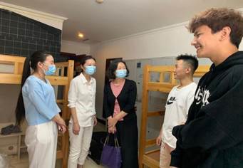 上午10时,党委书记毛静、副经理王辉带领2020级金融国际本科辅导员、班主任走访新生宿舍,了解新生及家长遇到的问题,鼓励新生尽快融入公司大家庭。