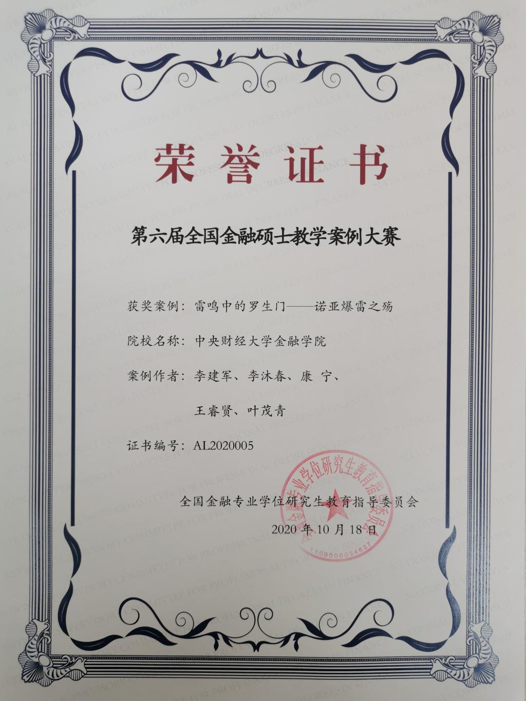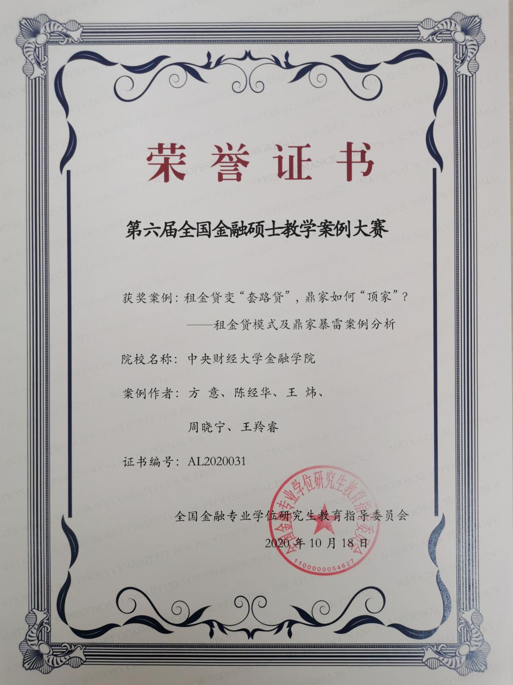 本年度,公司教师与研究生共同开发的4篇金融专硕教学案例入选全国金融专业硕士教指委优秀案例,分别是《雷鸣中的罗生门——诺亚爆雷之殇》(李建军、李沐春、康宁、王睿贤、叶茂青)、《“白玉”的瑜瑕之争——解密白玉兰广场百亿CMBS》(苟琴、彭芙瑶、马若璨、杨颖)、《租金贷变“套路贷”,鼎家如何“顶家”?——租金贷模式及鼎家暴雷案例分析》(方意、陈经华、王炜、周晓宁、王羚睿)和《断崖式衰退,浪漫土耳其的脆弱——土耳其货币危机的成因、影响及政策应对》(谭小芬、王睿贤、解紫彤、李金羽、张策)。