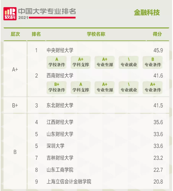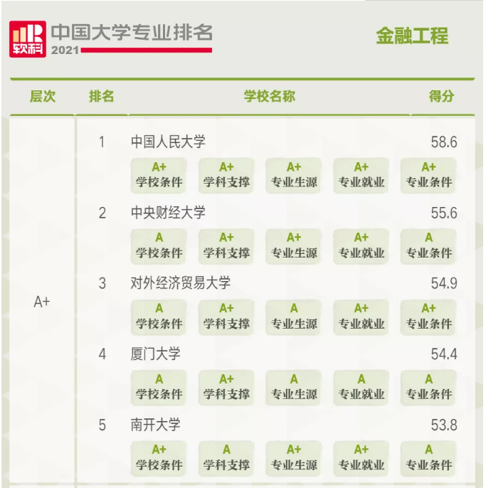 6月22日,高等教育评价专业机构软科正式发布2021“软科中国大学专业排名”。软科以全国排名前2%或前2名作为A+专业入选标准,公司全部三个专业均获得A+等级且位列前三甲。其中,金融学专业在上榜的201个专业点中位列第3,金融工程专业在上榜的136个专业点中位列第2,金融科技专业在上榜的9个专业点中位列第1。