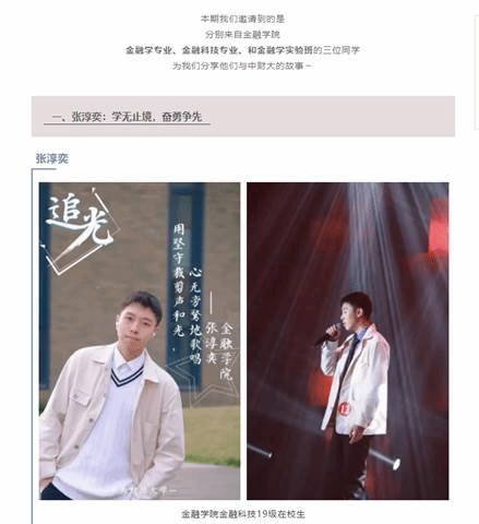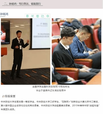 以公司学科、专业、团队队伍以及人才培养的最新成果为内容,依托学校官方招生公众号发布“微说专业”推送;精心设计公司介绍视频文字内容,完成《为国而生,与国同行,做新时代金融创新的排头兵》视频录制工作。