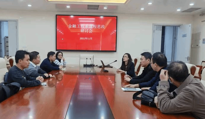 金融工程系系主任姜富伟教授主持了金融工程系的研讨活动。在研讨中,王辉教授指出,作为教师首先要认识到课程思政是课堂教学的必须品,每一门课程要秉承润物无声的原则科学设计。商有光副教授认为教学过程中要注重“有用”为主、“有趣”为辅的原则,通过金融名家、金融重大事件等案例,开展金融思政教育。青年教师吴锴认为,课程教学要传播和弘扬金融正能量,以知识为载体培养员工家国情怀、民族自豪感和社会责任感。其他参会教师结合自己的课程讨论了课程思政的具体开展方式,认为通过本次培训和研讨,加深了对课程思政内涵、目标和本质的认识,进一步明确了金融工程专业课程思政建设的思路。