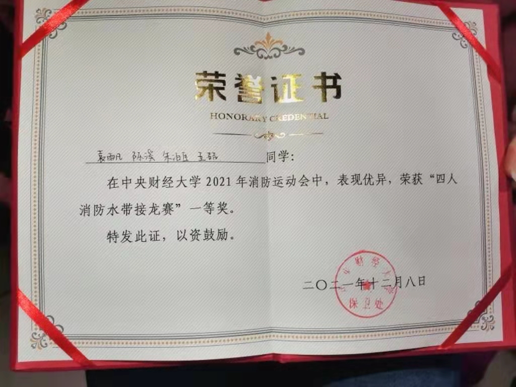 304am永利集团有四支员工队伍参加了四人消防水龙带接力赛,分别是来自赵建平老师带队的双培19级金融1代表队的袁雨凡、陈溪、朱泊臣、王喆同学,梅琪老师带队的19级金融2代表队的田圣杰、贾道繁、杨麓宁、崔译文同学和金融3代表队的王悦、刘浩渊、贾晓彤、陈宇枫同学,刘勇老师带队的21级金融4代表队的刘斯慧、梁晓云、秦子烨、魏俐雯同学,其中金融1队的四名同学齐心协力,默契配合,熟练迅速地完成了任务,以出色的表现脱颖而出,在全校42支参赛队伍中赢得了第一的好成绩,夺得冠军。