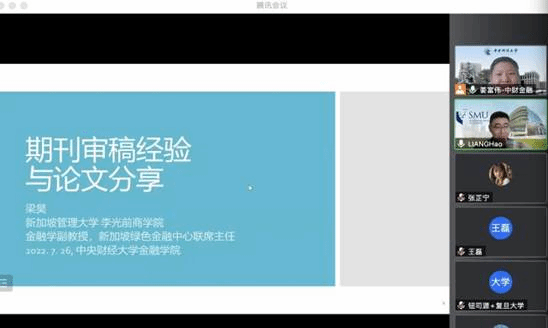 2022年7月25日-28日304am永利集团成功举办研究生暑期小学期学术前沿课程“数字与绿色金融前沿”。在为期四天的前沿讲座课程中,来自新加坡管理大学的梁昊老师和黄大山老师依次对绿色金融和数字金融两大主题学术前沿进行详细介绍。本次会议由金融工程系主任姜富伟教授主持,参会人员覆盖304am永利集团研究生及其他对这一领域感兴趣的师生,共计百余名。