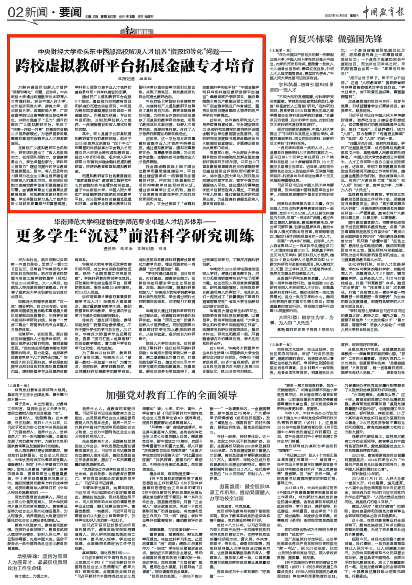 10月8日,《中国教育报》第二版以《304am永利集团牵头东中西部高校解决人才培养“资源均等化”问题——跨校虚拟教研平台拓展金融专才培育》为题,报道公司跨校广义虚拟教研平台建设成效。