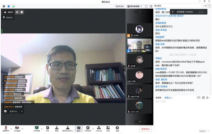 安教授在课程中鼓励同学们随时提问,并对同学们提出的每个问题都进行了耐心细致地解答。同学们在这门课中学到了资产定价和风险管理领域的相关知识,提升了学术科研能力和解决现实金融问题的能力,拓宽了研究视野。《资产定价与风险管理》课程在同学们对安教授的感谢声中圆满结束。