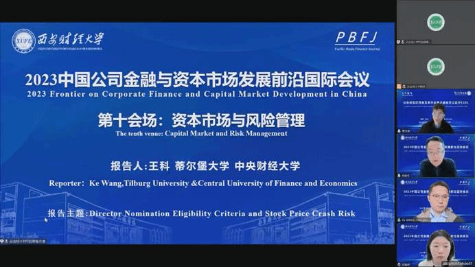2023年3月4日至5日,公司蒂尔堡项目博士生王科参加了由西安财经大学和太平洋金融杂志主办的2023年中国公司金融与资本市场发展前沿国际会议,其合作论文通过评审,被论坛录用,受邀报告论文,并参与点评。