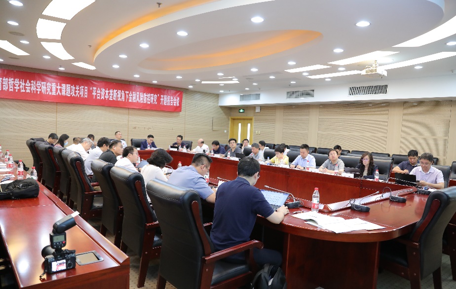 7月9日,公司王辉教授作为首席专家的教育部哲学社会科学研究重大课题攻关项目“平台资本垄断视角下金融风险研究”开题论证会在学术会堂604会议室顺利举行。