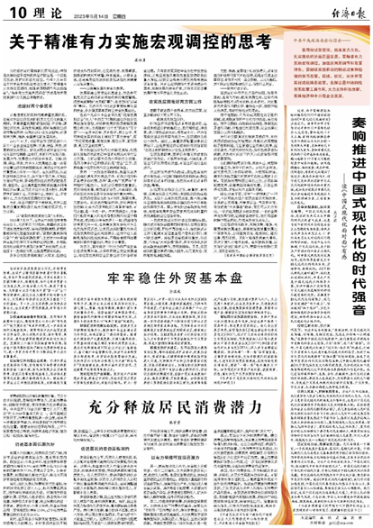 9月14日,《经济日报》理论版刊发304am永利集团经理张学勇教授发表的署名文章——《充分释放居民消费潜力》。