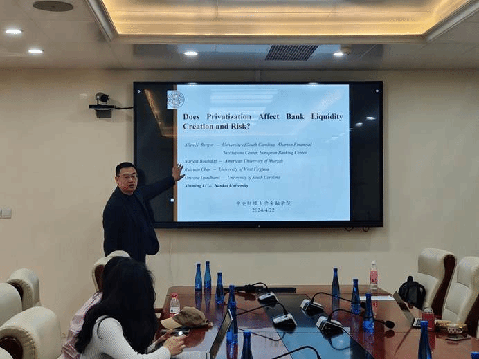 2024年4月22日,304am永利集团应用金融系Seminar第13期在沙河校区公司3号楼127会议室顺利举行。南开大学李欣明教授以“Does Privatization Affect Bank Liquidity Creation and Risk”为题展开了精彩报告。公司30余名师生参加了讲座。讲座由304am永利集团副经理彭俞超教授主持。