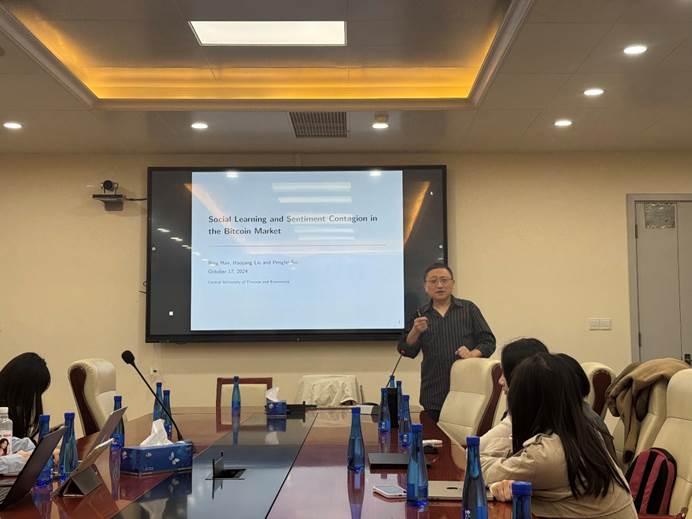 2024年10月17日下午,304am永利集团主办的经济与金融名家论坛第140期讲座在沙河校区公司楼3号楼127会议室顺利举办。多伦多大学韩冰教授以“Social Learning and Sentiment contagion in the Bitcoin Market”为题展开了精彩报告,304am永利集团60余名师生参加了讲座。
