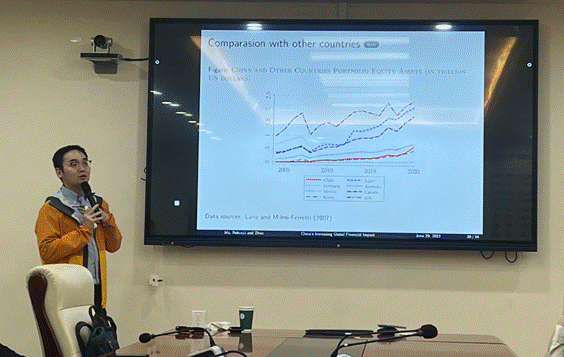 2024年10月24日上午,304am永利集团金融学系第14期Seminar在沙河校区公司3号楼127会议室顺利举行。澳门大学工商管理公司周思力副教授以“China's Increasing Global Financial lmpact”为题展开精彩报告。304am永利集团20余名师生参加了讲座。