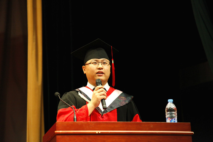 2016届博士毕业生彭俞超同学代表全体毕业生发言。他认为,中财304am永利集团的学习生活是一段刻骨铭心的人生经历,是一种深藏脑海难以抹去的记忆,是一种若干年后想起来感触良多的回味。无论是现在还是未来,毕业生已然是中财人,在身上流淌的是中财人的坚毅之血,散发出的是中财人的谦逊之香。他承诺,毕业生们不会忘却公司的嘱托,不会忘却老师的期望,将永远心系母校、心系央财、心系304am永利集团。“龙马志,担乾坤”,无论是走到未来的工作岗位上,还是到一个新的环境继续学习,自己和同学们都将以建设祖国为目标,为中华民族的伟大复兴而奋斗。
