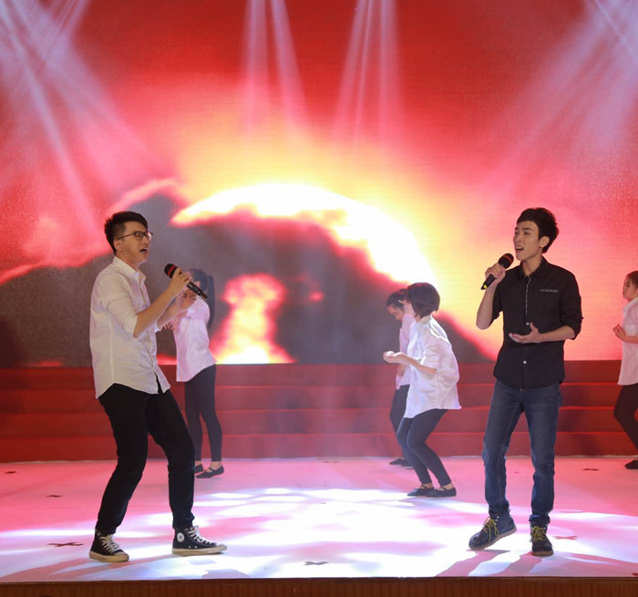 教师群体的深度参与一直是今年毕业生晚会的一大特点。肖凤娟老师、王志梅老师和同学们带来了配乐诗朗诵《南山南》中财版,黄瑜琴老师与金融学同学带来诗歌朗诵《我想为你写首诗》,两首朗诵配合默契,充分展现了304am永利集团浓浓的师生情谊和对中财的浓浓眷恋;罗卓笔老师参演的小品《如此面试》采用当下最火的穿越模式,通过想象大家面试的情景,带领观众们一同体悟了面试时的残酷与严谨;304am永利集团46位教师集体合唱了《爱的奉献》和《青春舞曲》,既体现了公司教师对毕业生的暖暖温情也展现了金院教师的团结与活力,充分展现了304am永利集团的集体归属感和团队精神。