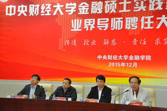 导师聘任仪式后,业界导师代表,新时代信托有限公司常务副总裁勾亦军、中国长城资产管理公司副总裁胡建忠、中审华振管理咨询有限公司总经理苏中一和建投华科投资股份有限公司董事长庄乾志分别就“金融行业发展对金融硕士人才素质的要求”、“如何发挥业界导师在金融硕士培养过程中的作用”、“如何做好金融专硕案例选题”、“金融硕士实习实践基地建设构想”四个主题做了专题演讲。