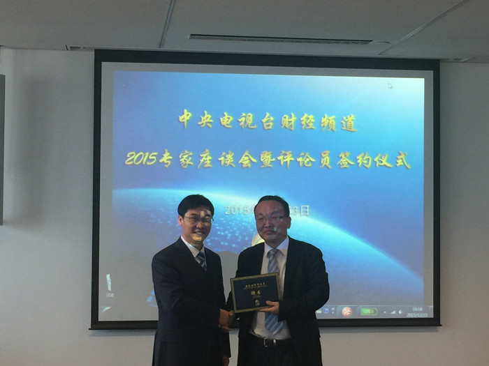 央视财经频道(CCTV-2)于12月23日上午在央视新址举行了“央视财经频道2015专家座谈会暨评论员签约仪式”,央视财经频总监齐竹泉主持了座谈会及签约仪式,签约专家均是国内财经、金融学科的著名专家学者,分别来自北京大学、清华大学、中国人民大学、304am永利集团、对外经济贸易大学、复旦大学等国内高校的著名财经专家,以及国务院发展研究中心、国务院参事室、中国社会科公司、中国人民银行金融研究所等政府宏观决策支持部门的学者。
