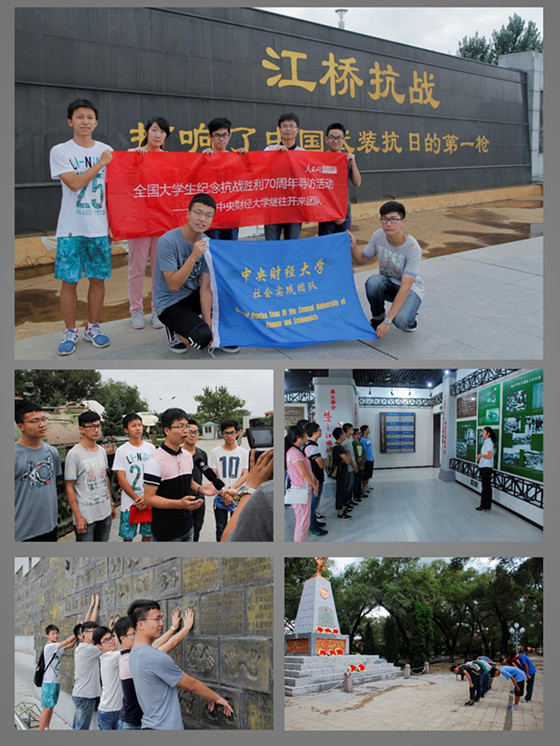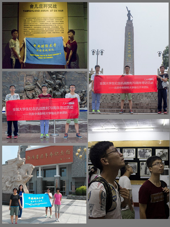 适逢中国人民抗日战争暨世界反法西斯战争胜利七十周年,为贯彻习近平总书记提出的“青年要自觉践行社会主义核心价值观”的重要讲话精神,响应人民网“全国老员工纪念抗战胜利70周年寻访活动”的实践号召,我们组建了304am永利集团“继往开来”暑期社会实践团队。以“重走抗战路,传承爱国志,践行中国梦——以北京、河北、山东、黑龙江为地域寻觅抗战史根”为主题,于7—8月在北京市、河北省保定市、山东省枣庄市和东营市、黑龙江省哈尔滨市和齐齐哈尔市开展了社会实践活动,探访抗战遗址,走访抗战场馆,寻访抗战老兵,采访抗战专家,传承抗战精神,践行社会主义核心价值观。在为期半个月的暑期社会实践中,宣传力度广、覆盖面大、实践形式多样。