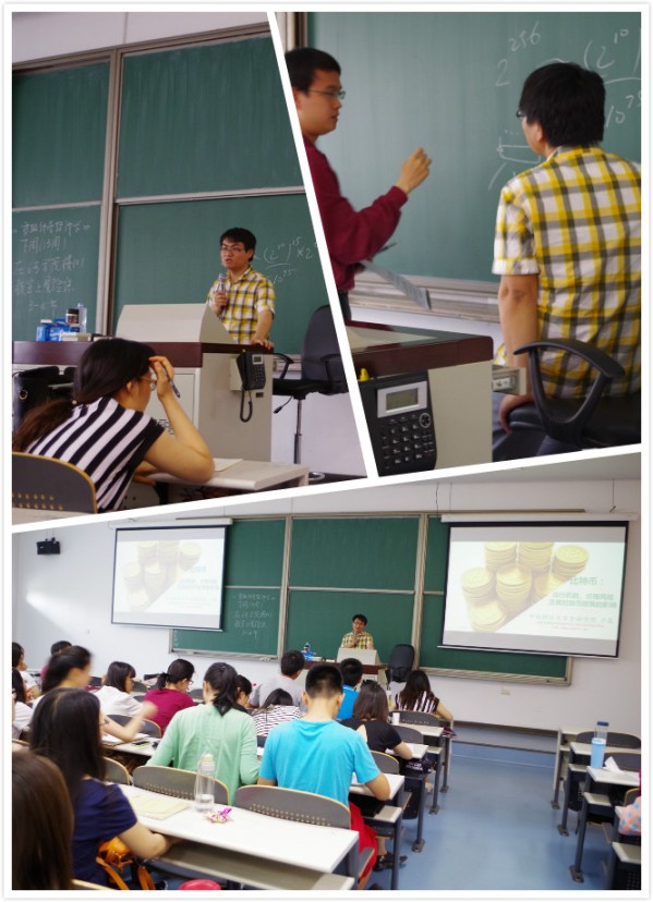 方意老师首先向同学们细致地讲解了理解比特币运行的一些基本概念和运行机制。他从散列函数(Hash)、交易单(Transactions)、数字签名、账簿(Blocks)账簿链(Blocks Chain)、工作量证明(Proof of work)、挖矿(Mining)以及时间戳等基本概念讲起。他指出比特币的生成(挖矿)本质是创建账簿。在创建账簿过程中为了证明交易的有效性,比特币网络采用了工作量证明机制(Proof of Work)。这种机制是比特币世界进行信息甄别而解决信息不对称的一种手段。为了形象化解释此机制,方意老师还结合大家投递工作简历邮件以及银行抵押贷款等实际例子予以解释,并幽默的告诉大家为了证明自己的邮件是“有效”的,应该在邮件正文中多写一些有用的信息,这个是很好的“工作量证明”。在讲解这些概念的时候,方意老师不仅从理论上进行分析,更从实际数据上进行解读。讲解完基本概念后,方意老师着重分析了比特币的一些特征,尤其对比特币不能融资进行了阐述,融资要求与比特币的匿名性和去中心化矛盾,而这必将阻碍比特币的长期发展。为了讲解比特币的价格波动,方意老师从比特币的供给面、需求面以及市场热情等多个角度,从数据上进行实证检验,并认为比特币的供给面决定了其长期走势,而市场热情则导致了短期价格过度波动。在关注比特币的风险时主要关注密钥被盗的网络风险以及各国政府对比特币态度差异导致的政策风险。对于货币政策的影响,方意老师讲解了几个理论模型用以阐述其对货币乘数、货币供应量以及物价的影响。方意老师在最后的展望部分,还阐述了通过改变比特币交易确认时间过长、不能融资而采取局部中心化的可能以及利用比特币的去中心化和低交易成本改进当前国际货币体系的可能。