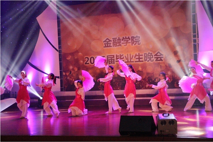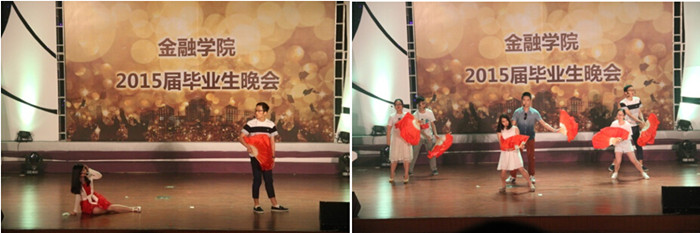 晚会接下来是创意集体表演“杯子舞”,15名同学围坐舞台,手中的杯子则在富有韵律感的主唱带领下与地板碰撞发出清脆利落的独特伴奏,颇有新意;全国各地方言的聚集汇成了诙谐幽默的“再见中财”诗朗诵,逗乐全场;李菊老师的一曲《回来》高亢激昂,博得全体观众的热烈鼓掌,刘俊同学演唱的《贝加尔湖畔》以温和的歌声仿佛将那片安详圣洁之地映在了大家的眼前。压轴登场的“相信未来”则以一对情侣的爱情保卫战为依托,融合了情景剧与集体舞,充分把304am永利集团同学们之间的深厚的感情与不尽的友谊展现了出来,十分感人。