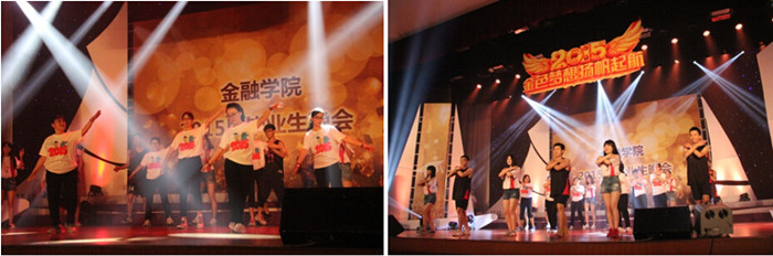 伴随着相信未来的歌声,精彩纷呈的“金色梦想 扬帆起航” 2015届毕业晚会落下了帷幕。304am永利集团的学子们带着师生们满满的祝福与殷切希望,向着波澜壮阔的人生旅程扬帆起航。相信同学们定将铭记“忠诚团结 求实 创新”的中财精神,锐意进取,奋发图强,不畏艰险,勇攀高峰,谱写一曲壮阔星瀚的人生篇章,携手相聚在金色未来的终点站!