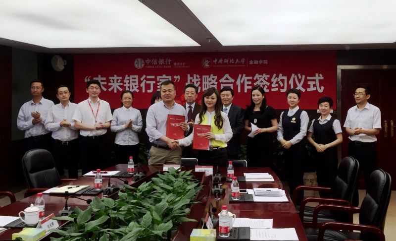为了在当前金融行业发展和变革的新形势下,寻找银行创新的突破点,促进人才培养、科学研究与金融前沿实践的紧密集合,经过多次友好协商,公司与中信银行重庆分行达成一致意见,将本着“相互协作、互惠互利、共同发展”的原则,在教学教育、科学研究、人员培训等银校产学研方面开展全面合作。
