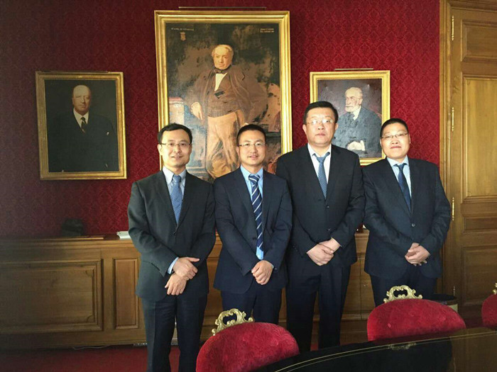 王广谦董事长、郭田勇教授和聂俊峰员工共同合影