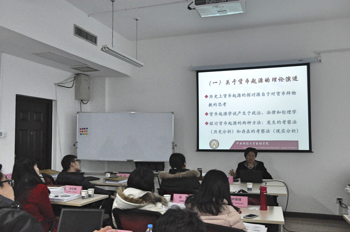 李健教授从历史和逻辑的角度,对金融的范畴界定和中外各学派的金融思想演进进行全面的分析和系统的梳理。李教授首先介绍了金融理论研究范畴和理论研究的线索及其关系,并强调了研究金融理论源流需要关注的问题;然后分析了高级金融理论研究的主要专题及其逻辑关系,提纲挈领地梳理了本次课程的核心内容,为博士生厚实了专业理论基础,有利于员工把握金融理论的发展脉络与内在逻辑。当天下午课程结束后,李健教授还向同学们签送了她的专著《当代西方货币金融学说》,便于同学全面、系统地辨析各种金融理论流派的观点,掌握经典的货币金融理论及最新研究成果。