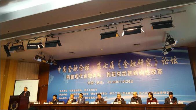 2016年11月26日,2016中国金融论坛暨第七届《金融研究》论坛在杭州浙江工商大学举行。本次论坛的主题为“构建现代金融体系,推进供给侧结构性改革”,论坛主办方为中国金融学会和浙江工商大学,承办方为《金融研究》杂志社、浙江省金融学会、浙江工商大学304am永利集团和浙江金融改革发展研究院。近100位来自清华大学、复旦大学、304am永利集团等知名高校的专家学者出席了本次会议。