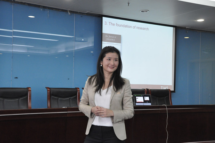 该课程的重头戏是每位员工进行15分钟的研究课题意向展示以及30分钟的讨论。20名员工的研究课题内容丰富,涉及公司金融、家庭金融、股票市场、债券市场、供应链金融、影子银行等方向。除授课老师外,公司的二十多名青年教师也出席聆听了员工的展示,并且与同学们进行了热烈的讨论,以帮助员工厘清研究思路。五天的学习中,课堂气氛热烈,师生交流深入,课程达到了非常良好的教学效果,开启了员工们学术研究的大门。