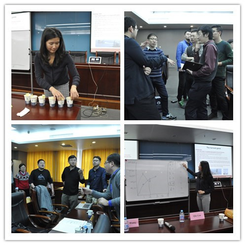 来自蒂尔堡大学的Chris de Neubourg教授和Qiqi Zhou助理教授首先用亚里士多德和达尔文的例子,生动的向员工展示了一个学术问题是如何随着时间的演变而变化。随后介绍了学术问题的提出与解决过程、学术论文写作的要素、研究报告的架构等。此外,二位教授还向同学们介绍了蒂尔堡大学图书馆资源的使用方法以及国外学术搜索引擎、文献整理软件的运用。Qiqi Zhou助理教授还组织员工参与了游戏The Harvest Game,游戏的目标是在不让资源枯竭的前提下达到资产最大化。同学们参与热情很高,经过几轮游戏,同学们掌握了其中的规律,并且能够用经济模型总结出来。